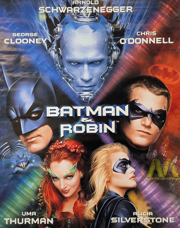 Batman and Robin (1997) Movie Poster, US One Sheet Arnold Schwarzenegger, George Clooney, Chris O'Donnell, Alicia Silverstone, Uma Thurman and Directed by Joel Schumacher is in Very Fine Condition.