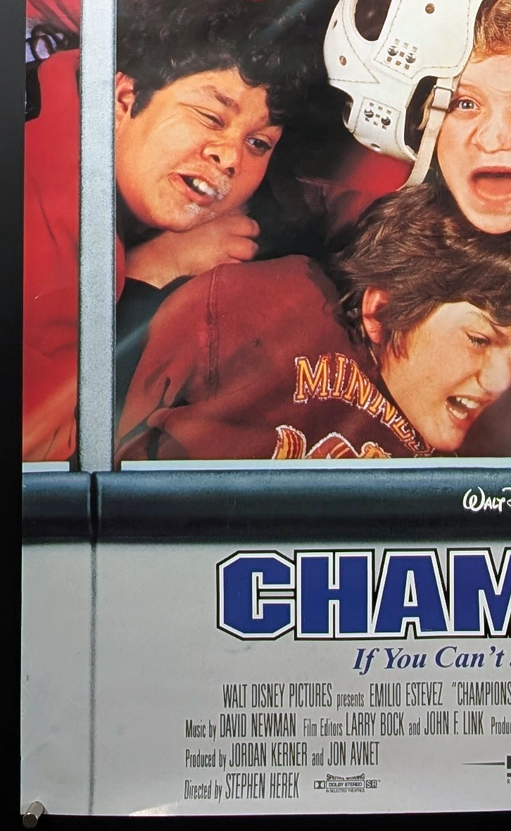 Champions AKA The Mighty Ducks (1992) Australian One Sheet, Movie Poster, Emilio Estevez, Joshua Jackson, Directed by Stephen Herek is in Very Fine+ Condition.