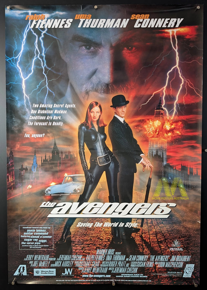 The Avengers (1998) Australian Advanced One Sheet Movie Poster, Starring Ralph Fiennes, Uma Thurman, Sean Connery, Directed by Jeremiah Chechik and is in Fine/Very Fine condition. Movie Poster and Condition...