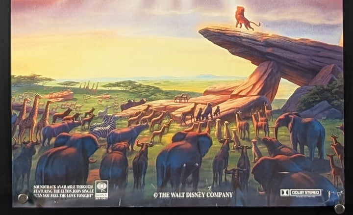 THE LION KING (1994) MOVIE POSTER, ORIGINAL DAYBILL, DISNEY ANIMATED